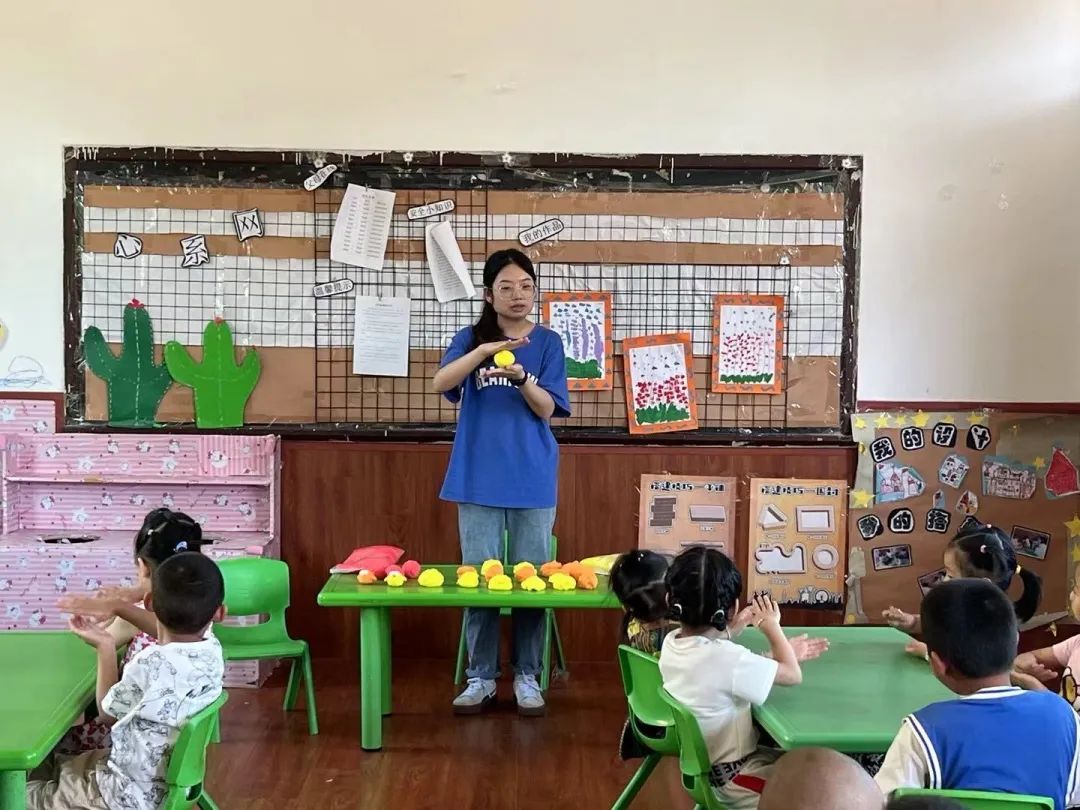 今天是“宁火‘燎’原,逐梦文峰”实践队到文峰小学的第四天,队员们跟小朋友们已经相对熟悉,今天的课堂分外活泼。