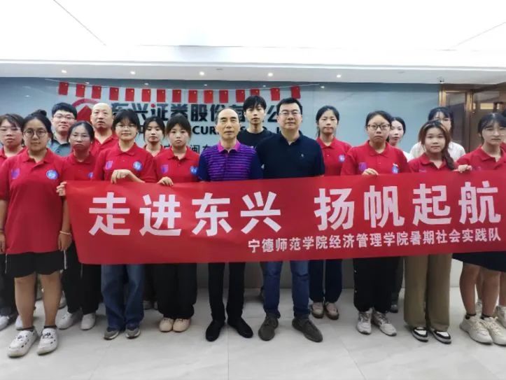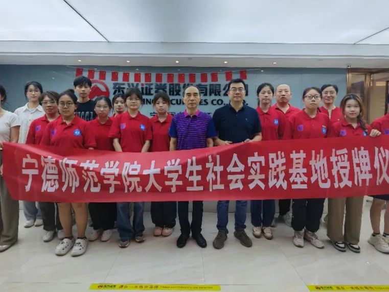7月10日,“乘风破浪,就业寻访”社会实践队指导老师刘涛和10名队员于东兴证券股份有限公司宁德营业部参与宁德师范学院大学生社会实践基地授牌仪式,由宁德师范学院经济管理学院党委书记、院长郑立文向东兴证券股份有限公司宁德营业部负责人郑晨炜授牌。