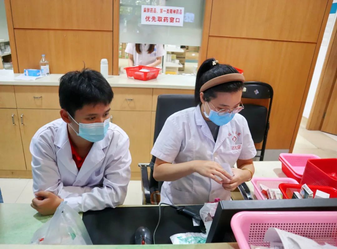 药学专业的同学也继续在门诊药房与住院药房里学习,带教老师分别给队员们布置任务,有的在清点药品、有的在学习药物处方、还有的跟随带教老师推车拿药……队员们各自忙碌着。一天的学习结束了,队员们也更加学到了谨慎与认真的态度。
