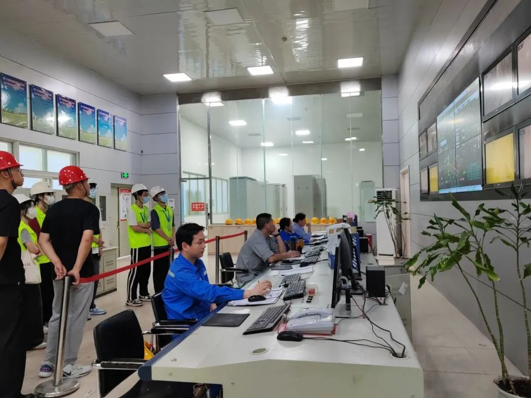 工作人员引领实践队员到达中央控制室。“这里是整个垃圾焚烧发电厂的核心控制中心,能够实时监控和调控厂区的运行状态……”工作人员详细介绍道。在这里,实践队员初步了解了垃圾焚烧发电的全流程。最后,工作人员带领实践队员到发电车间,了解了焚烧发电的基本原理。