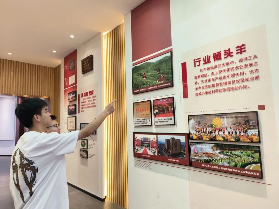 在讲解人员带领下,实践队员在坦洋村乡村振兴展示馆中了解了习近平总书记“四进坦洋”的生动故事。习近平总书记曾言:“我在福建那些年,喝茶是以工夫茶为主。”尽管坦洋工夫茶一路走来经历曲折,但世世代代的坦洋人,都以最赤诚的心打磨制茶技艺,保证品质,未曾懈怠,为乡村振兴注入源源不断的活力和希望。