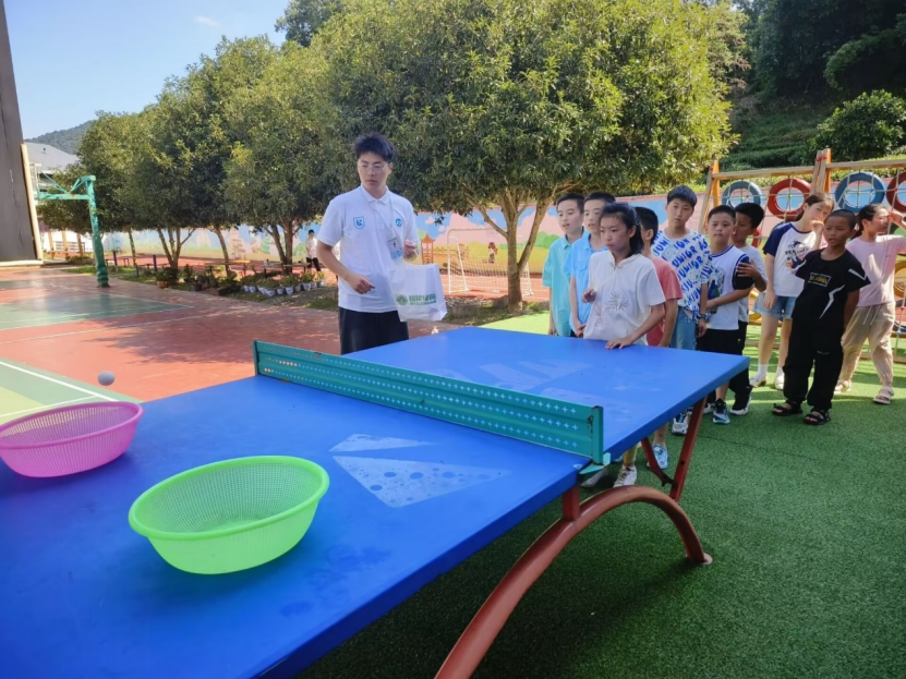 活动包含老鹰抓小鸡,乒乓球平衡和弹跳投掷等多个游戏项目,各年级学生被分为若干组,在支教队员的带领下轮番进行各个游戏项目。