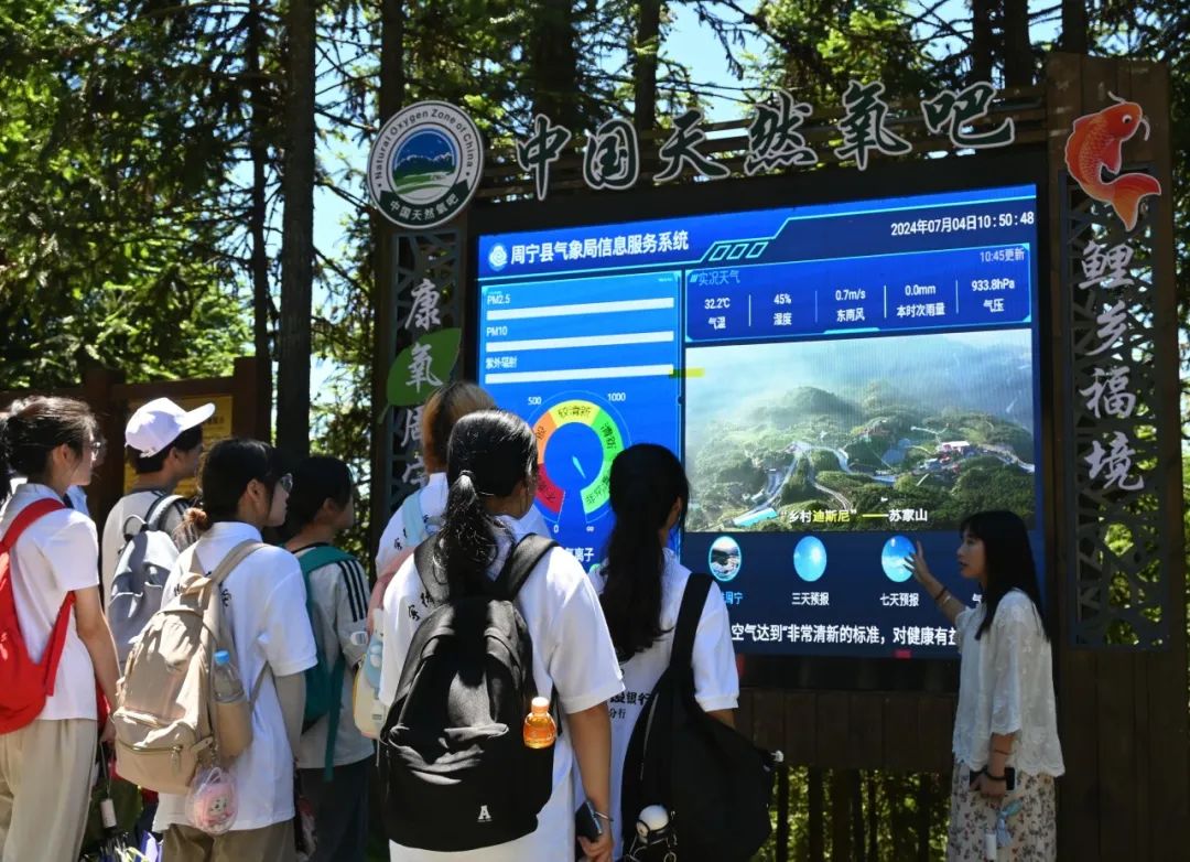 (团队成员听讲解员讲解“中国天然氧吧”)