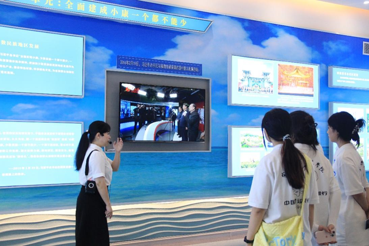 活动现场,实践队员认真聆听讲解,通过参观“跨过温饱线”“蓝图绘到底”“打赢攻坚战”三大板块,学习了解习近平总书记关于打赢脱贫攻坚战重要论述,坚持一张蓝图绘到底的坚定信念,扎实推进精准扶贫的伟大实践。