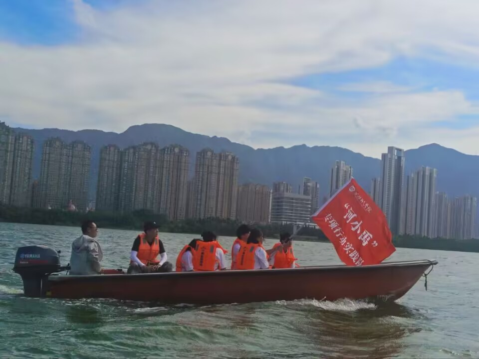 下午,在河长办工作人员的带领下,实践队员们乘坐船只前往东侨区河长办所负责的东湖水域开展巡护工作。