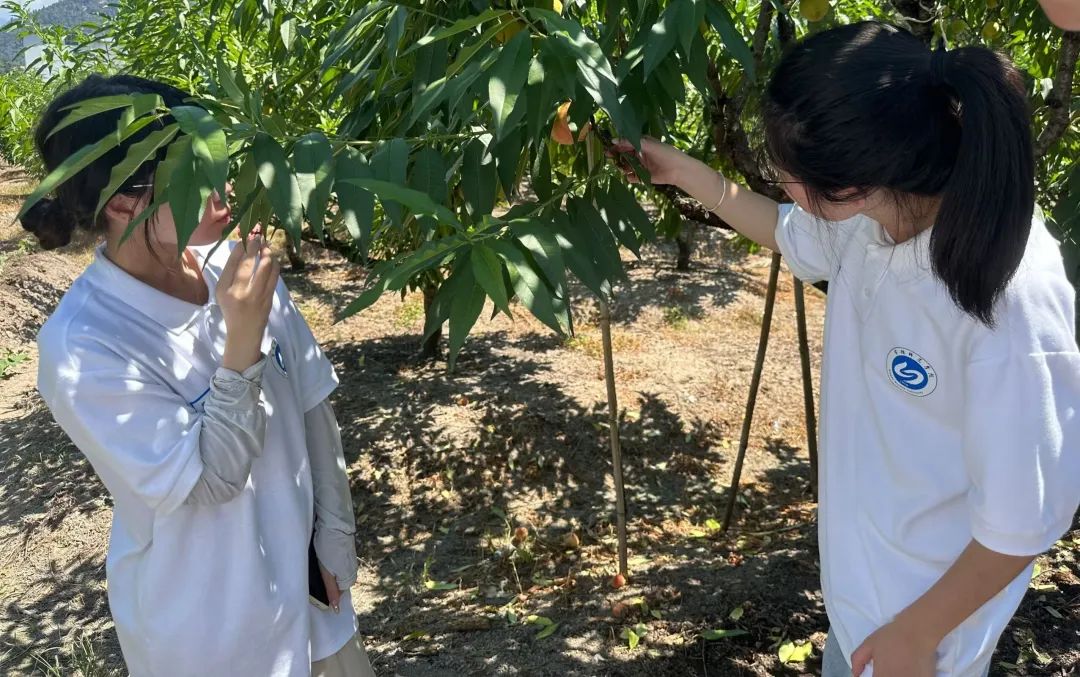 在活动期间,实践队队员们在征得农户的同意后,走进桃园,穿梭于桃林之间,体验采摘的乐趣。