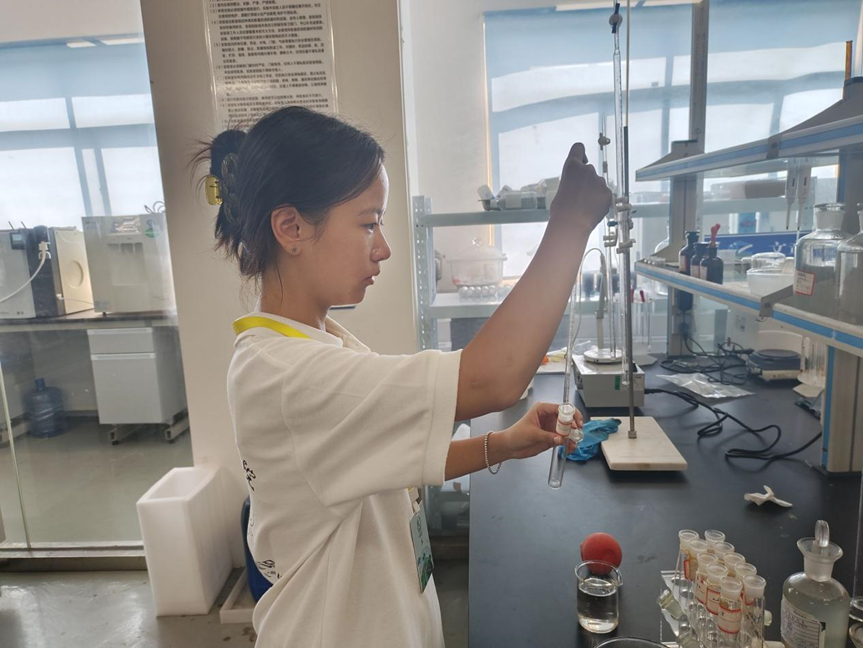 在工作人员的协助下,实践队员们进行移液、测pH值等相关检测水质实验。通过工作人员耐心的讲解与示范,实践队员感受到水质监测工作的不易与工作人员对这份事业的热爱,也进一步坚定了保护河湖水质的决心