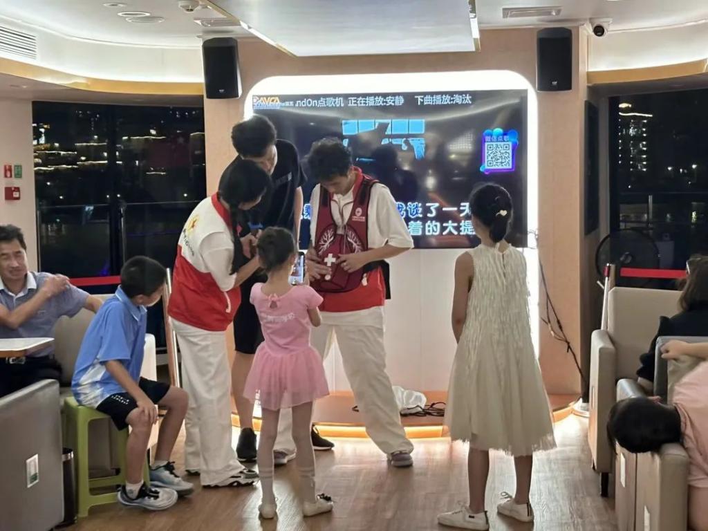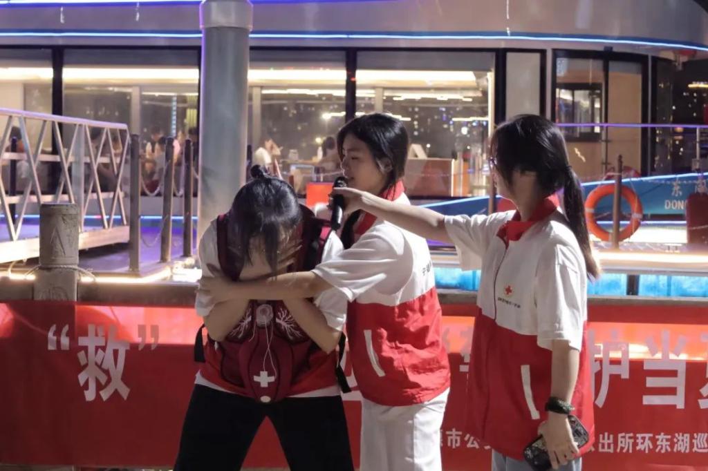 7月13日晚,在东湖之星游船点,学生分会成员们与东侨公安共同开展了心肺复苏和海姆立克急救法的教学活动。市民们积极参与其中,提升了市民的自救能力。