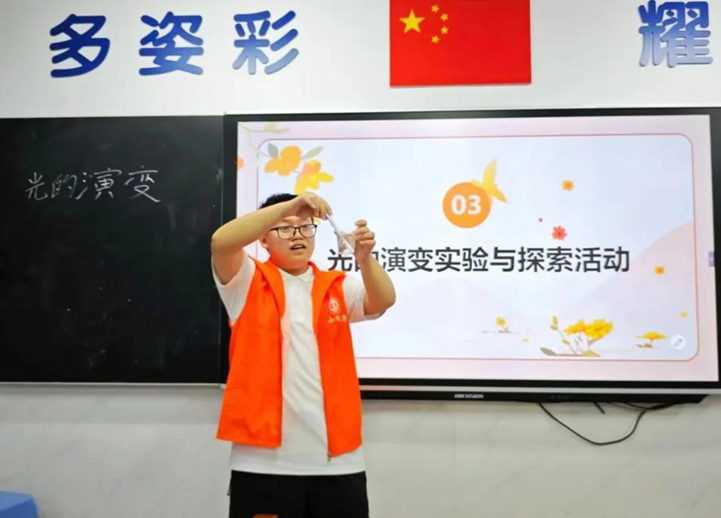 为激发学生的科学兴趣,培养创新思维和实践能力。7月18日,宁德师范学院小橘子支教队成员林光煜和孟应忠为同学们开展了科学演变的课程,包含大气压强、光、摩擦力等多个方面。