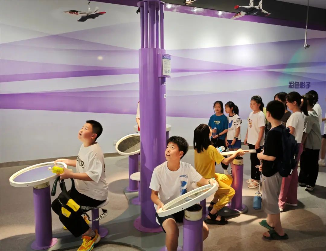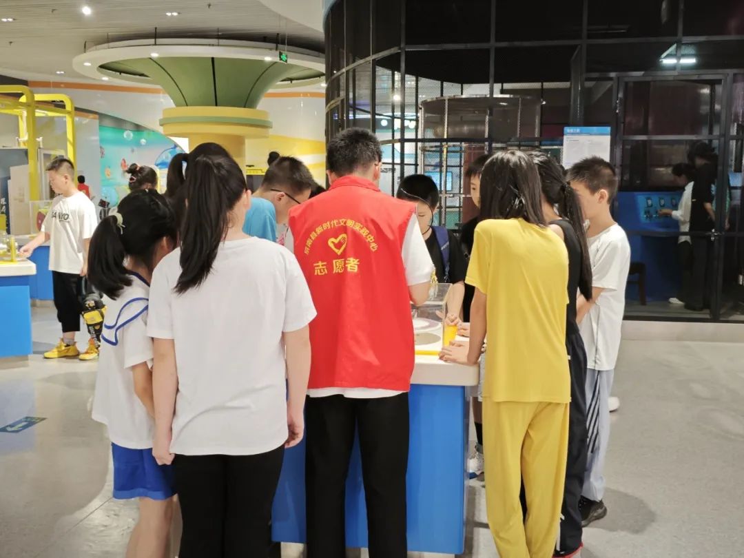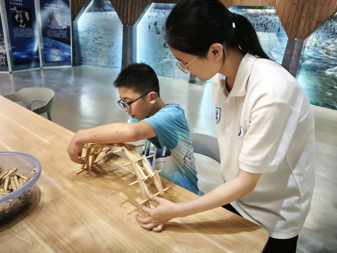 在课余时间,队员们带领孩子们走进科技馆,将课堂知识与科技馆现有设备相结合。序厅展区里,同学们通过3d投影采用古法重建万安桥,跨越时空,对话古人,领略中华优秀传统文化的魅力与智慧;在声光、电磁、力与运动和航天四个展区,支教队队员为同学们讲解相关物理原理。