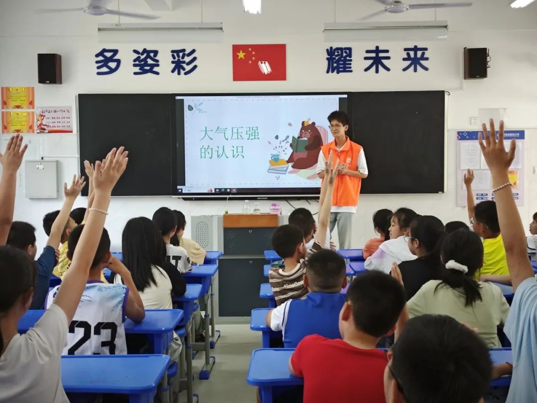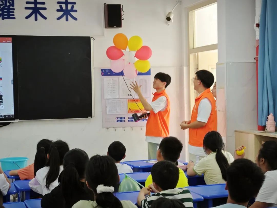 支教期间,小橘子红色支教队结合自身专业特色,以物理启蒙类为主、兴趣文体类、知识竞赛类为辅,为孩子们开设生活放大镜、科普探秘屋、科学演变、妙趣数学、趣说英语、艺彩手工等一系列丰富多彩的课程,旨在培养学生们五育共举,提高综合素质。